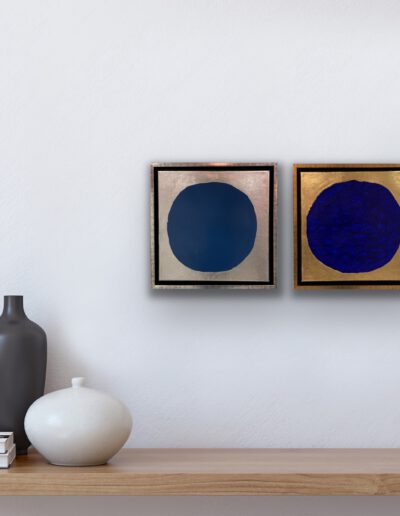 Das Gemälde Blau in Silber ist im Jahr 2021 entstanden und Teil meiner Serie „Farben“. Es wurde auf einer 30×30 cm großen Leinwand mit Acryl und Blattgold angefertigt.
