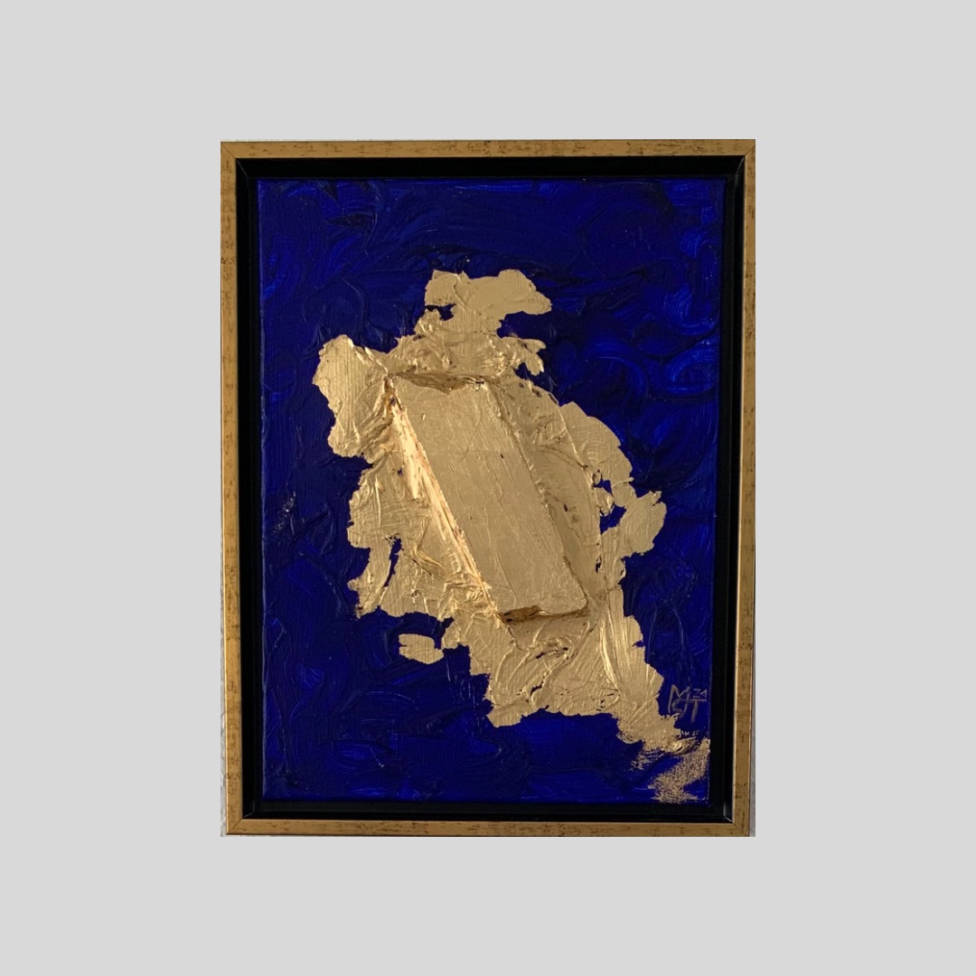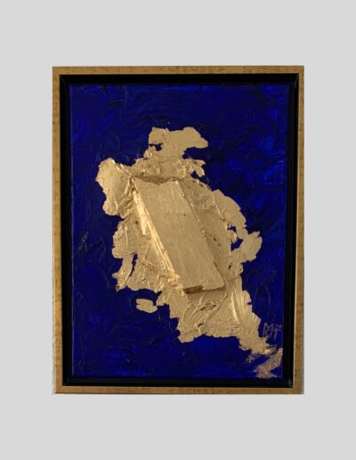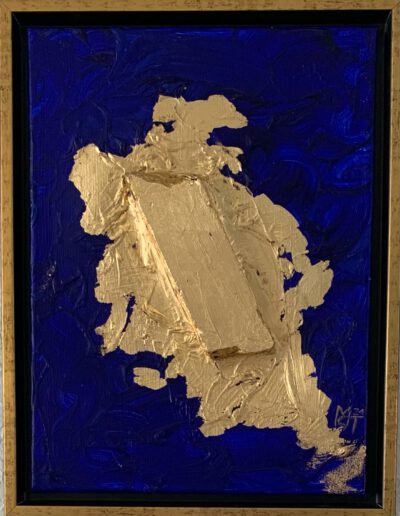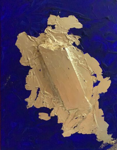 Das Gemälde Blaues Gold ist im Jahr 2021 entstanden und Teil meiner Serie „Farben“. Es wurde auf einer 40×30 cm großen Leinwand mit Acryl und Blattgold angefertigt.